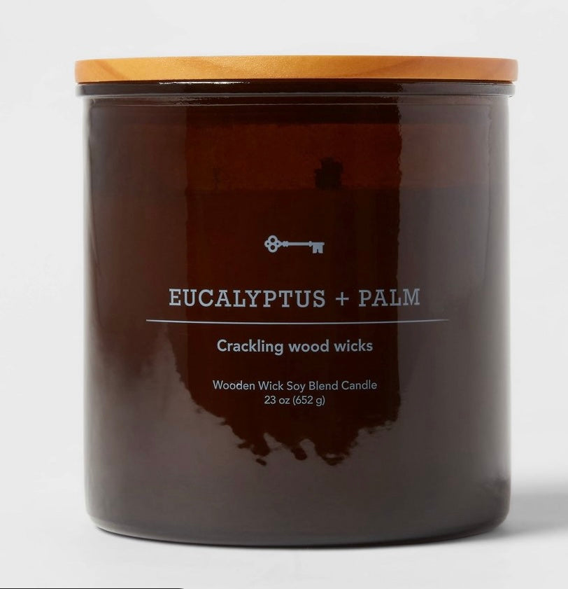 3-Wick Amber Glass Eucalyptus + Palm Lidded Wood Wick Jar Candle 14oz