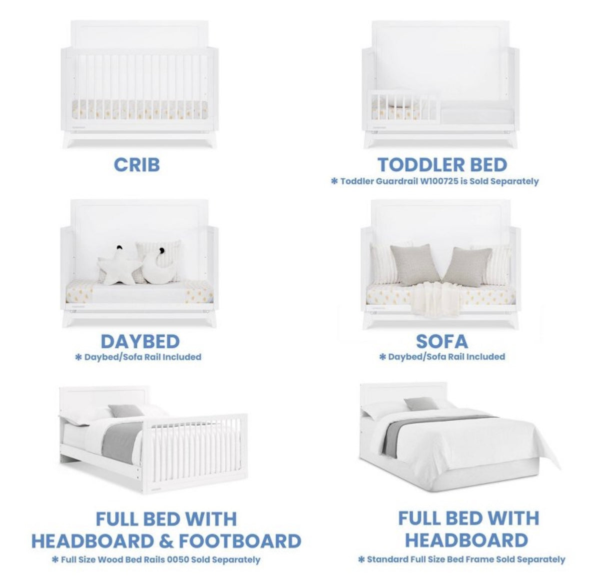 Features: 6-in-1 Convertible Cribs, Converts to a Daybed, Converts to a Toddler Bed, Converts to a Full-Sized Bed